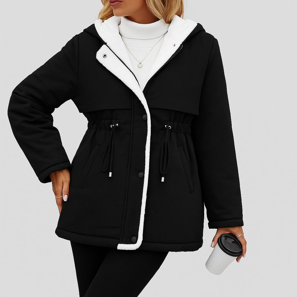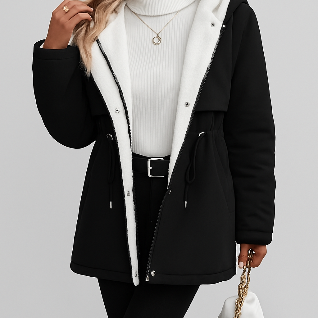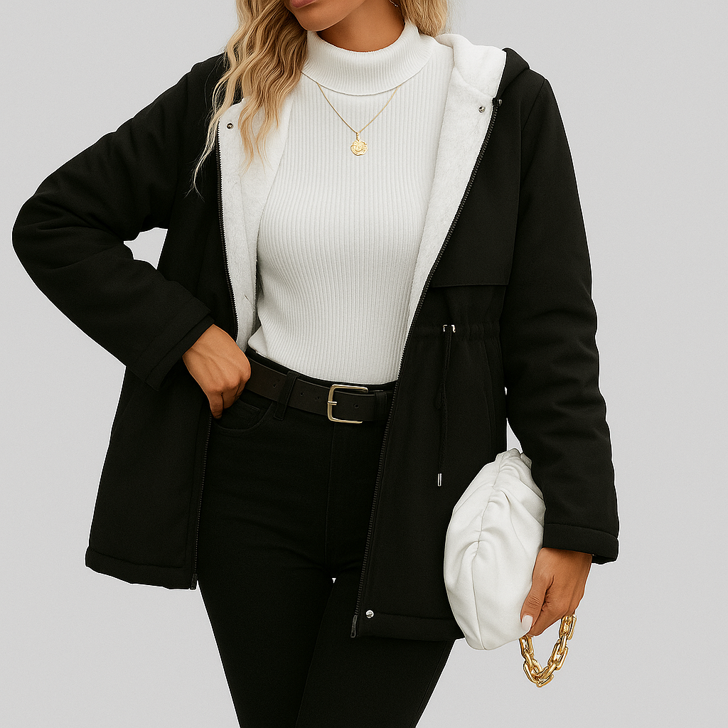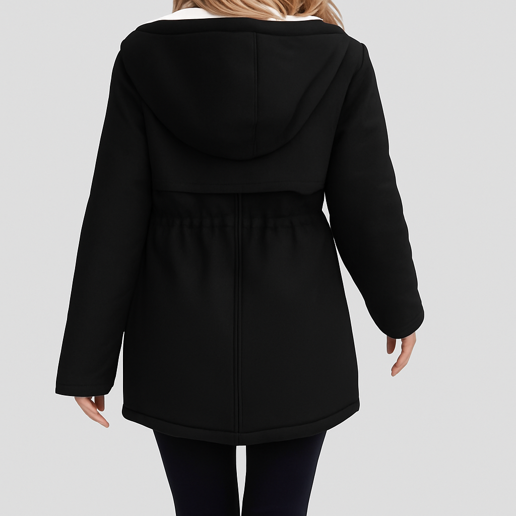Hochwertige Materialien, ein weiches Fleecefutter und eine schmeichelhafte Silhouette sorgen für ein luxuriöses Tragegefühl, während liebevoll gestaltete Details wie die verstellbare Taille und die warme Kapuze Funktionalität und Mode vereinen. Ob für den Stadtbummel, den Weg ins Büro oder den Wochenendausflug – dieser Mantel verleiht jedem Moment eine Note zeitloser Eleganz.