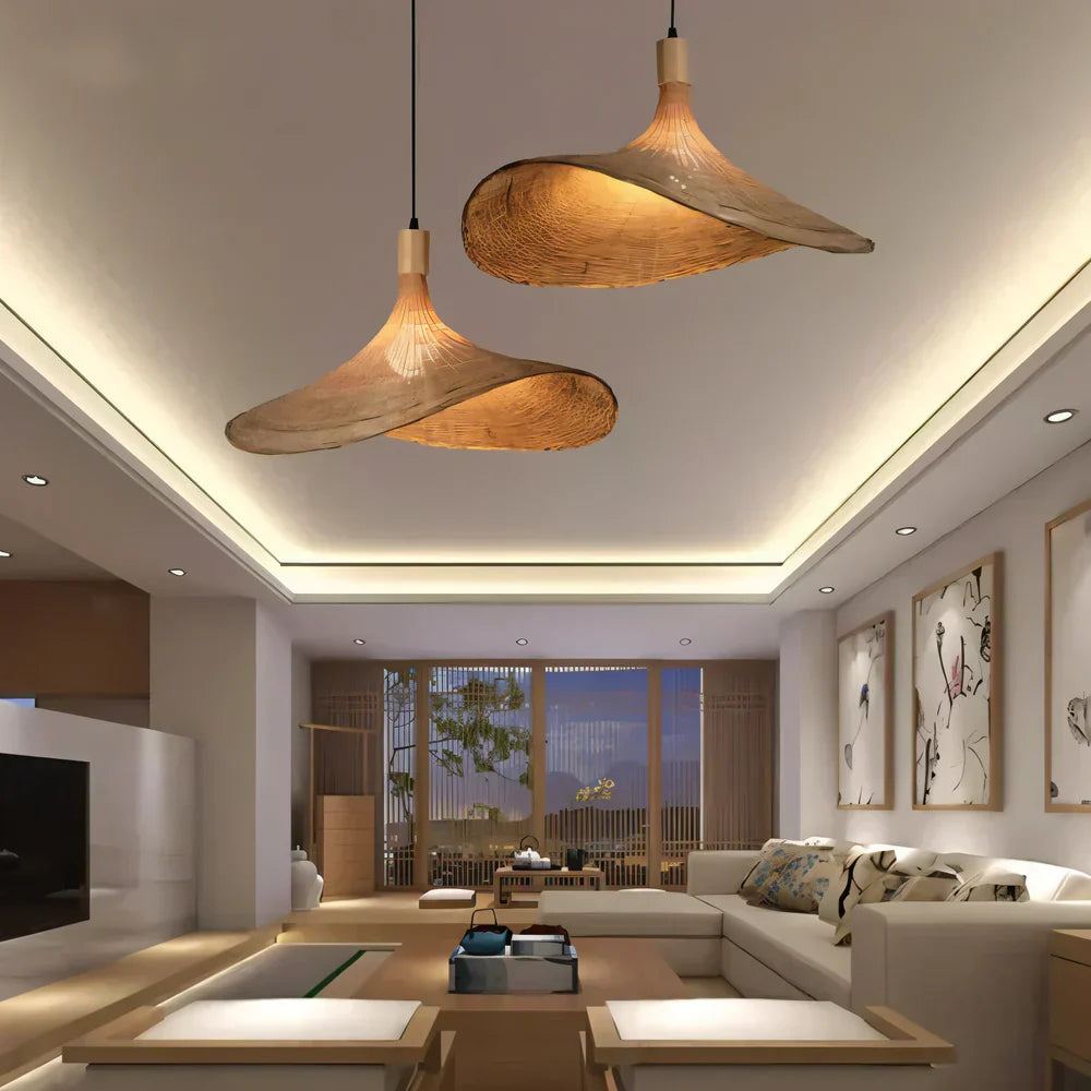 Die BambWicker Pendelleuchte zeigt ein sorgfältig handgefertigtes, gewebtes Design, das Ihrem Raum einen Hauch von natürlicher Eleganz verleiht. Ihr komplexes Gewebe schafft ein schönes Zusammenspiel von Licht und Schatten, das die Atmosphäre in jedem Raum verbessert.