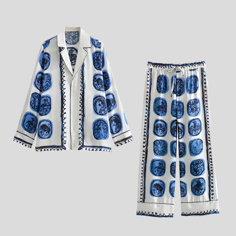 Das Cleo Geometrisch Koordinierte Set kombiniert auffällige Muster mit einer entspannten Silhouette und bietet einen kühnen, aber dennoch bequemen Look. Perfekt für Spaziergänge in der Stadt oder lockere Treffen – dieses zweiteilige Set sorgt dafür, dass Sie mühelos herausstechen.