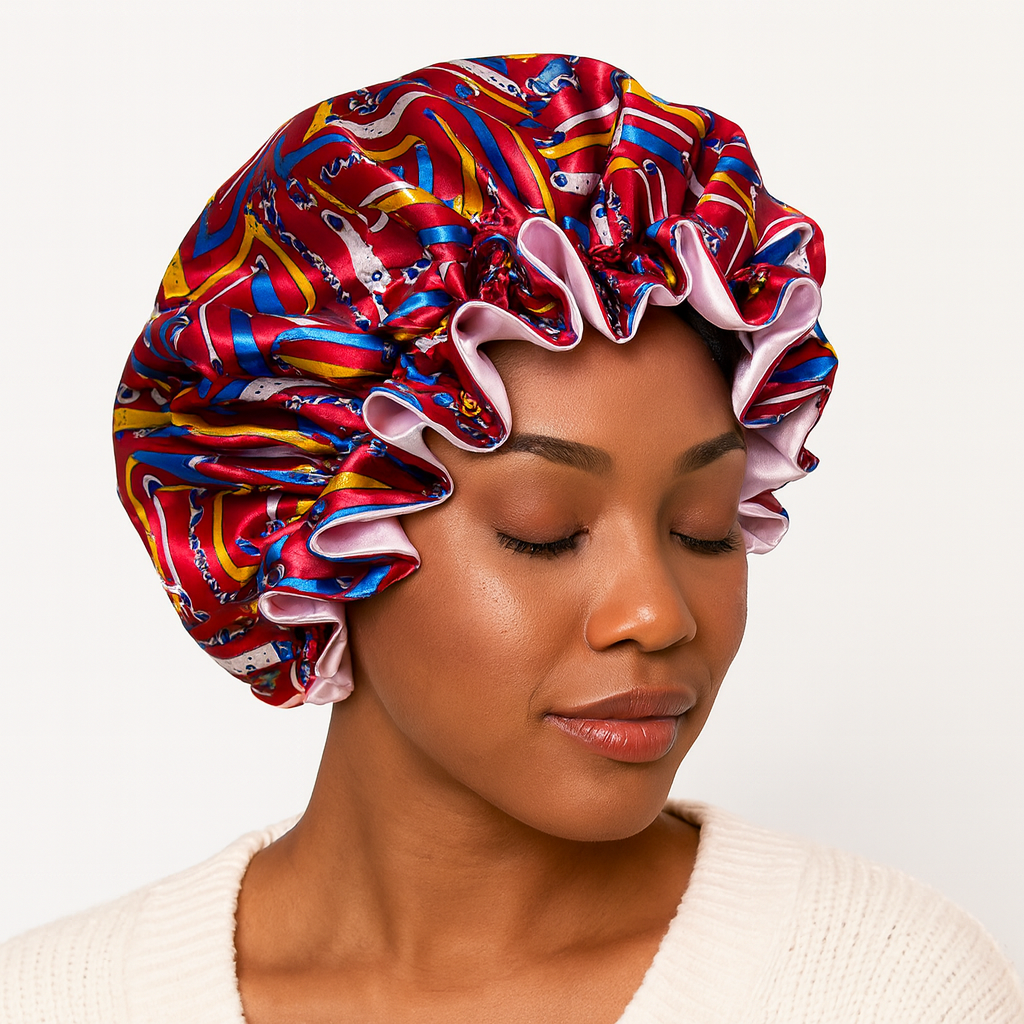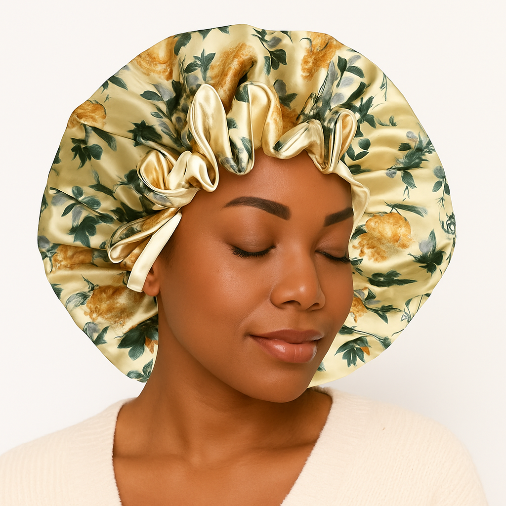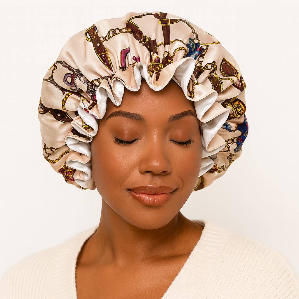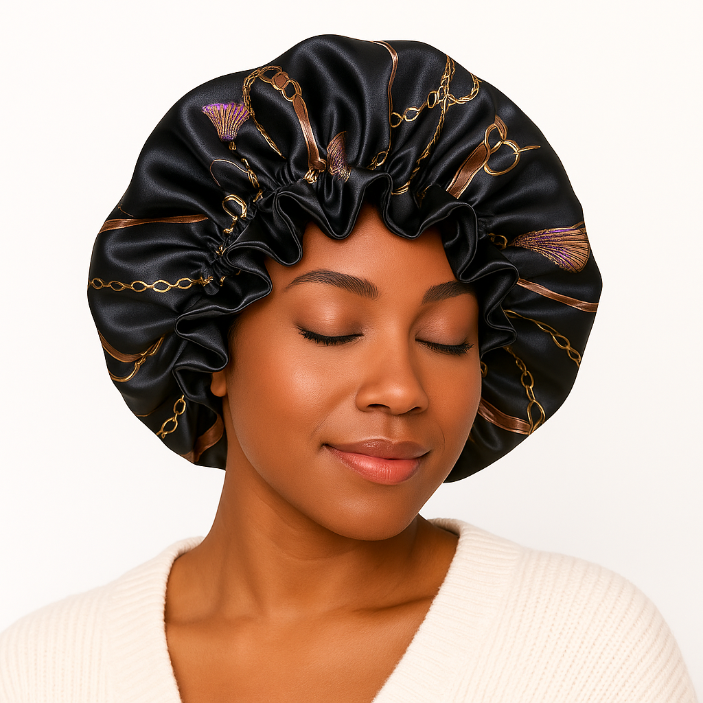 Erleben Sie Luxus und Komfort mit der Helen Silky Satin Bonnet Schlafhaube. Ihr glattes Satinmaterial reduziert Reibung, minimiert Haarbruch, Verwirrungen und Frizz, während es gleichzeitig die Feuchtigkeit bewahrt. Wachen Sie jeden Morgen mit gesünderem, glänzenderem Haar auf.