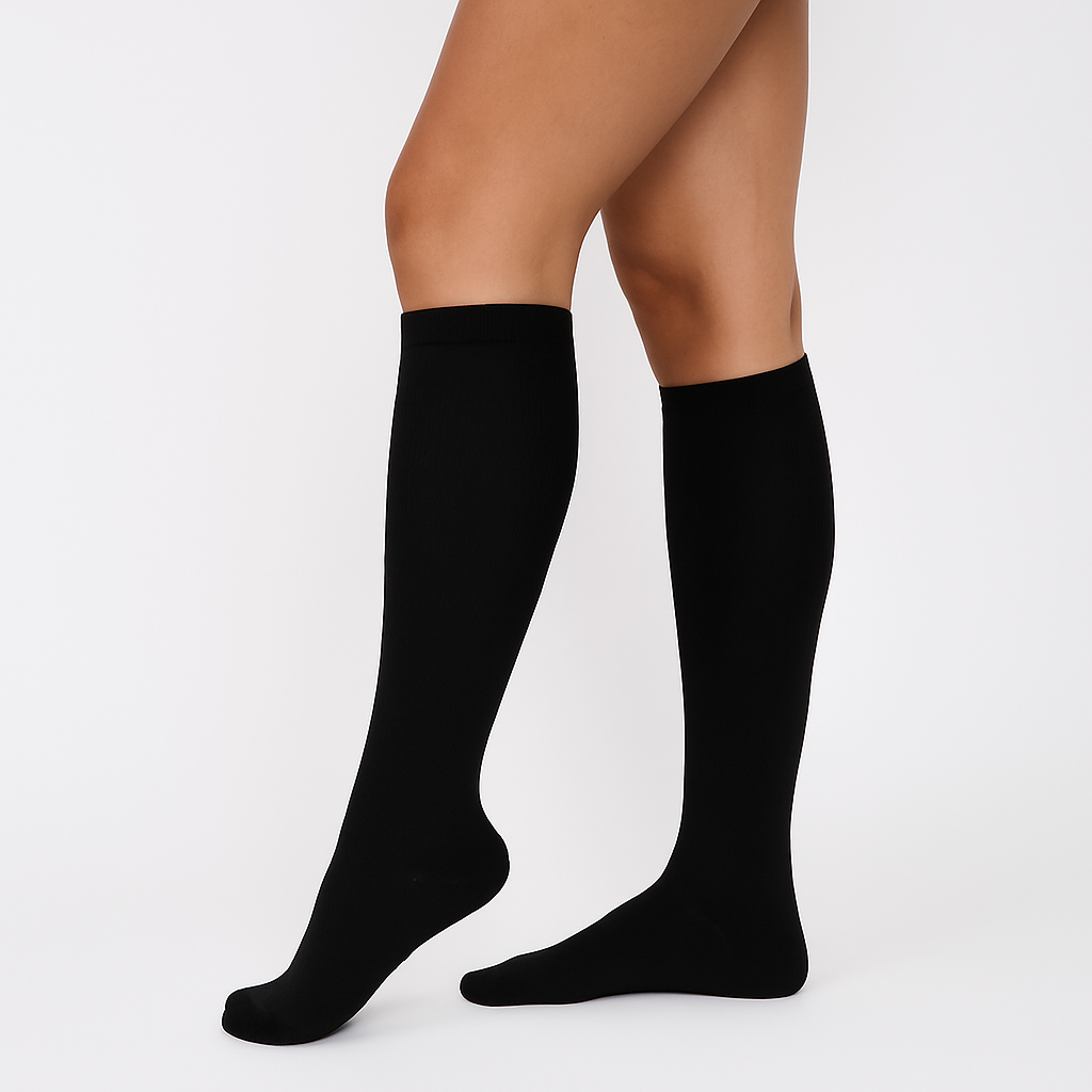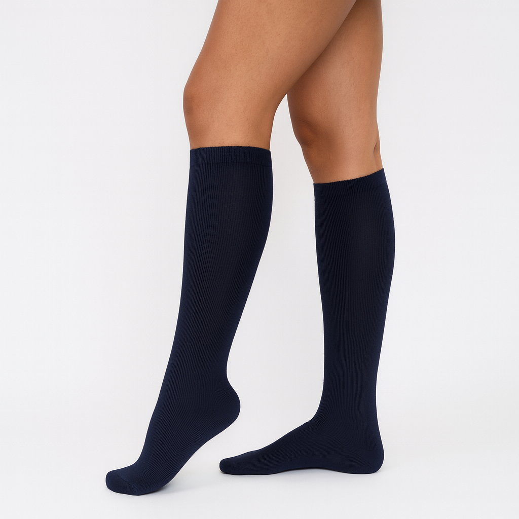 Kompriva umschließt Füße, Knöchel und Waden gleichmäßig und unterstützt dort, wo du es brauchst. Unauffällig, bequem und alltagstauglich – so startest du entspannt in den Tag und gehst abends mit leichten Beinen nach Hause.