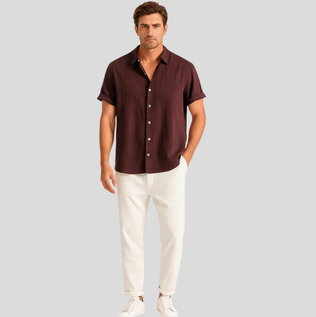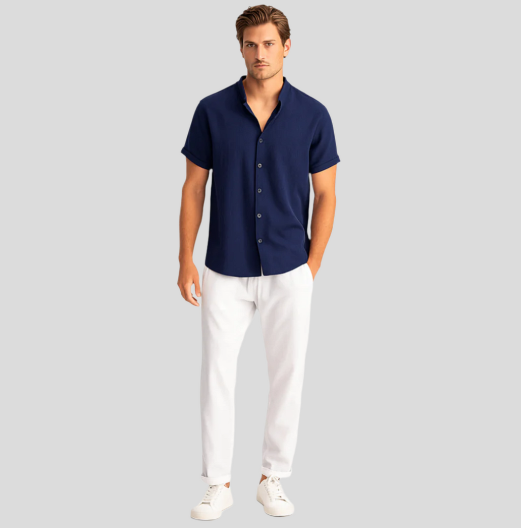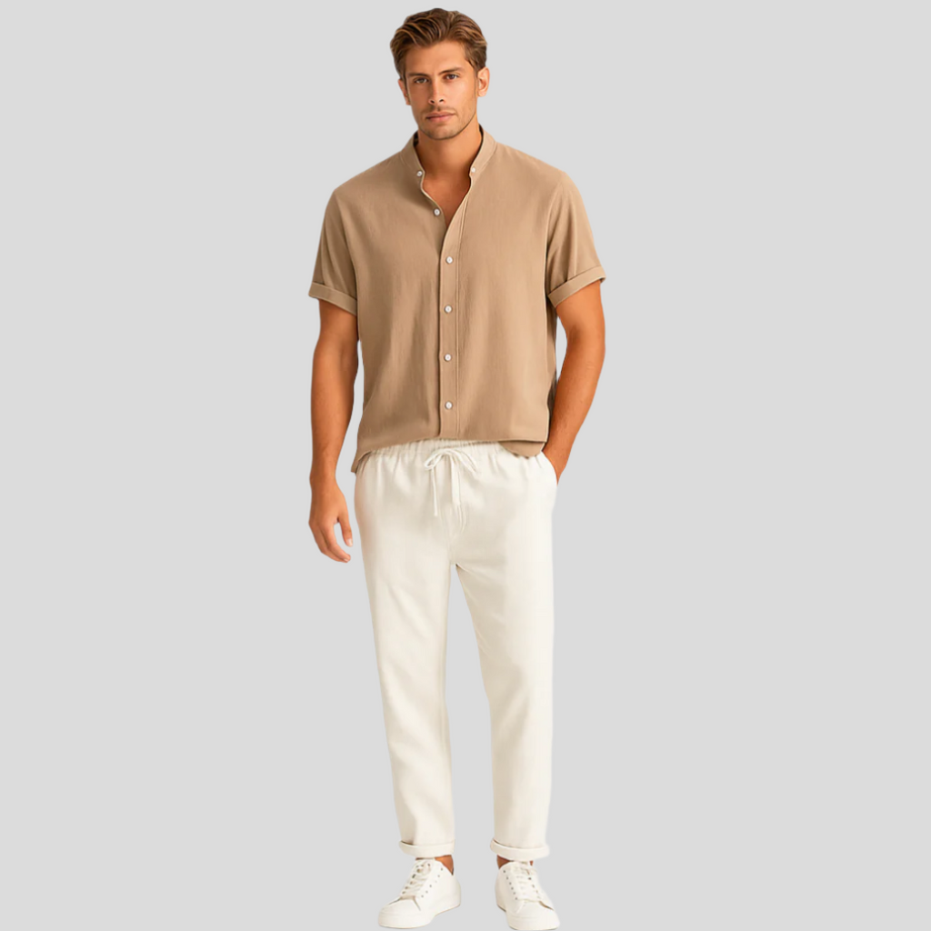 Das Luca Summer Linen Duo definiert deine Garderobe neu mit einer Mischung aus Komfort und Raffinesse. Dieses aufeinander abgestimmte Polo- und Hosenset wurde für den modernen Mann entworfen und bietet eine schmal geschnittene Passform, die deine Silhouette betont und sicherstellt, dass du – egal ob beim entspannten Brunch oder beim abendlichen Treffen – immer gut aussiehst.
