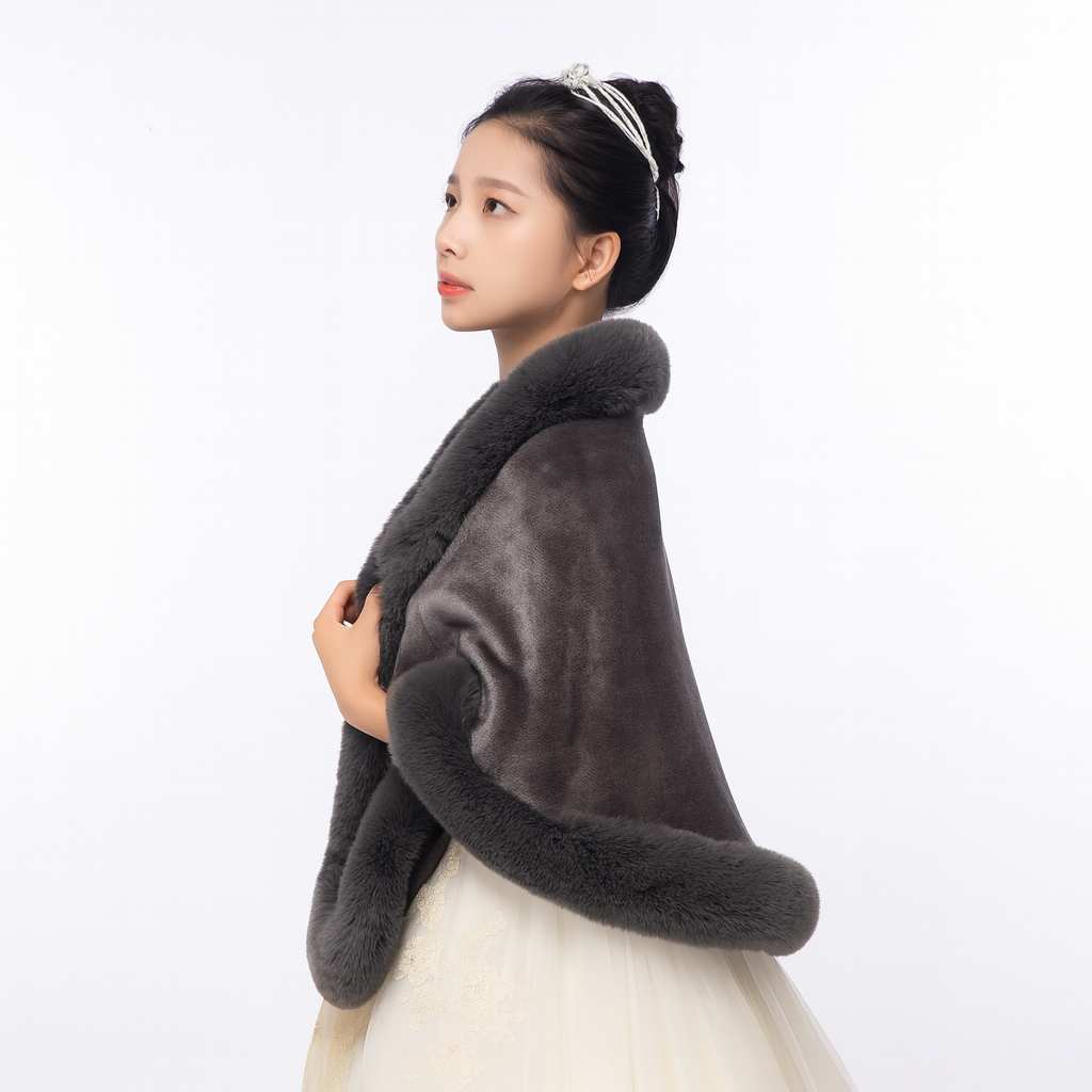 Schmeichelnde Länge: Als kurzer Umhang gestaltet, der sich anmutig über die Schultern legt, sorgt er für eine elegante Silhouette und zugleich für Bewegungsfreiheit.