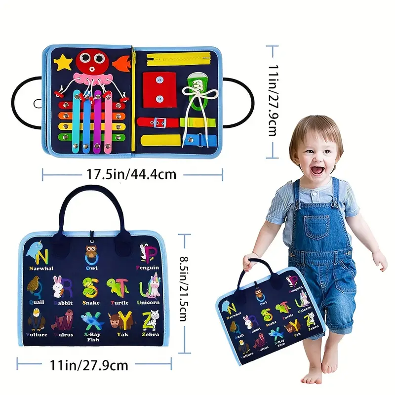 Fesselndes sensorisches Design: Kombiniert verschiedene Texturen, Schalter, Reißverschlüsse und Knöpfe, um Kinder zu begeistern und ihre Neugier zu wecken.