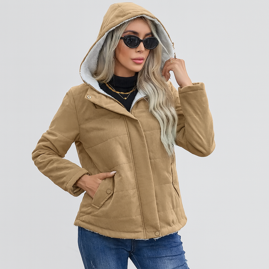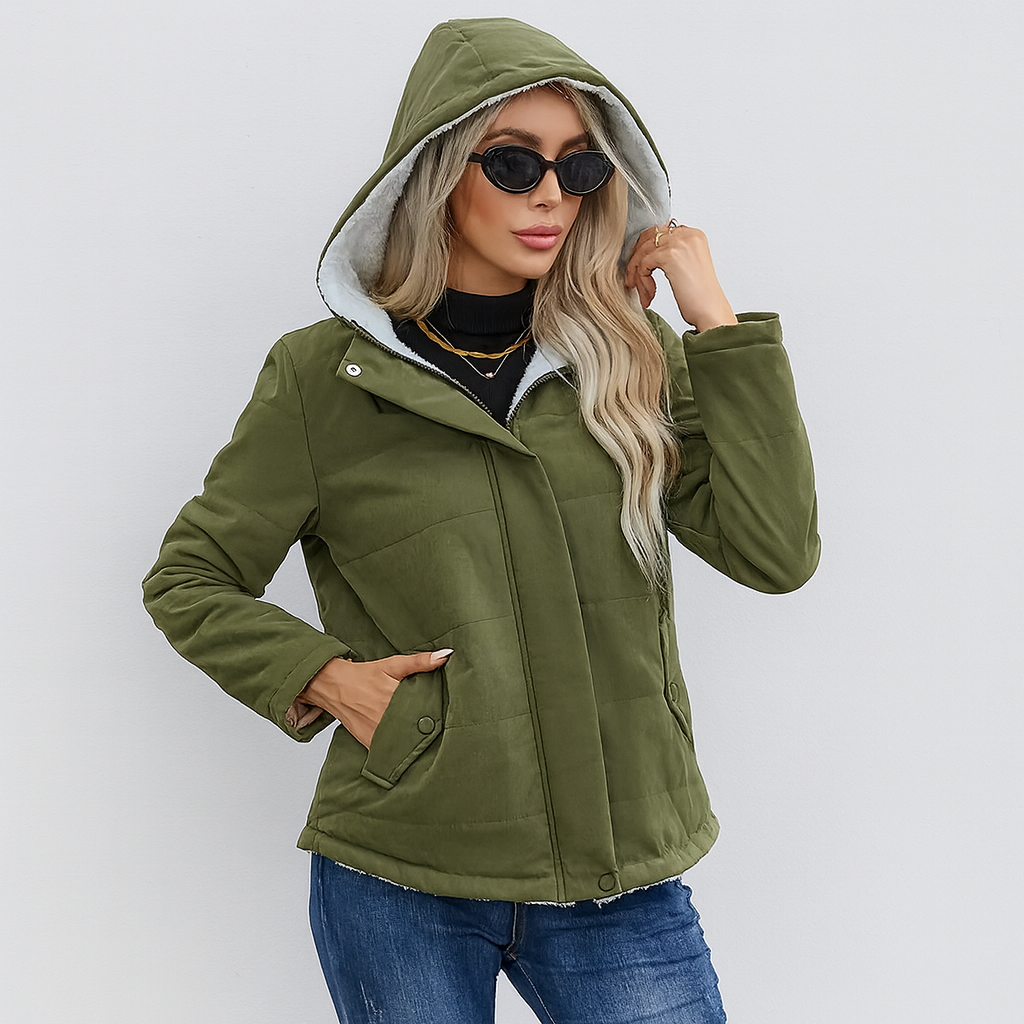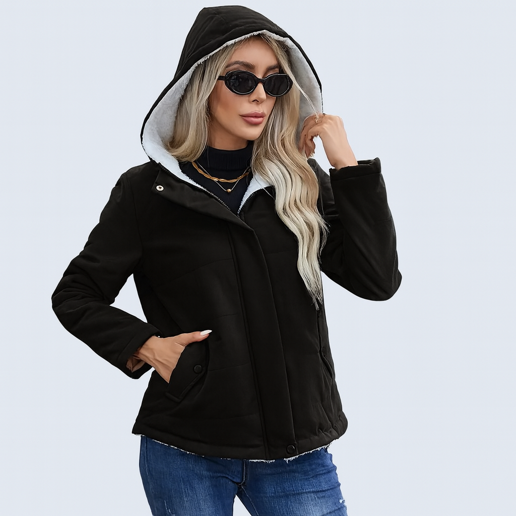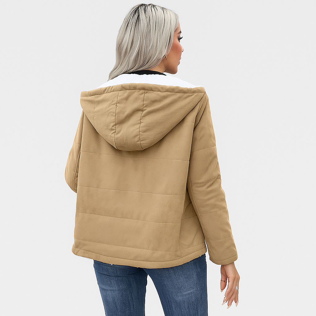 Die hochwertige Fütterung sorgt für angenehme Wärme, ohne aufzutragen, während der schlanke Schnitt und die feinen Details dem Mantel eine raffinierte Note verleihen. Die Kapuze, der Reißverschluss und die zusätzlichen Knöpfe verbinden Schutz und Stil – ideal für Alltag und gehobene Anlässe gleichermaßen.