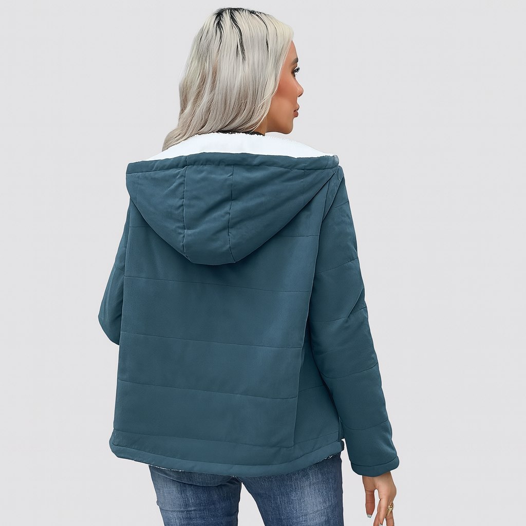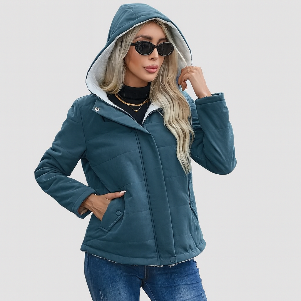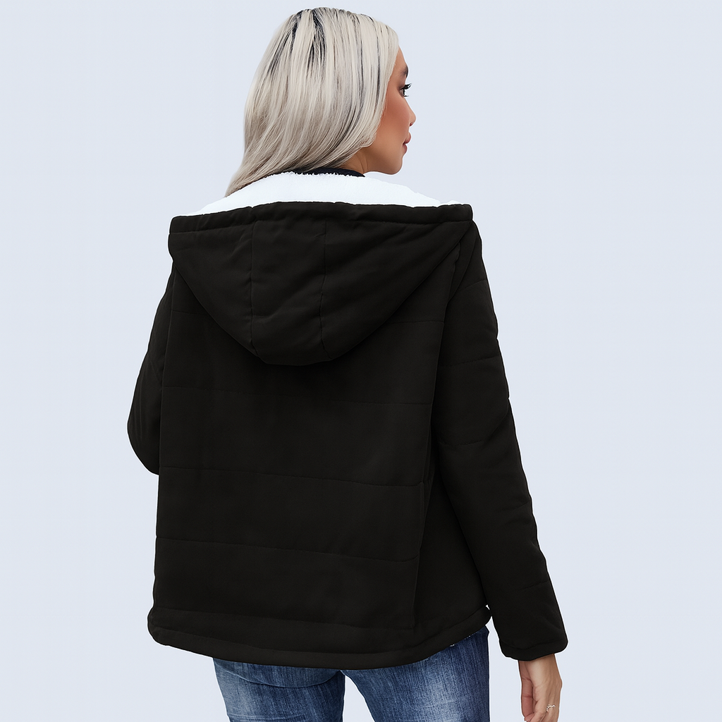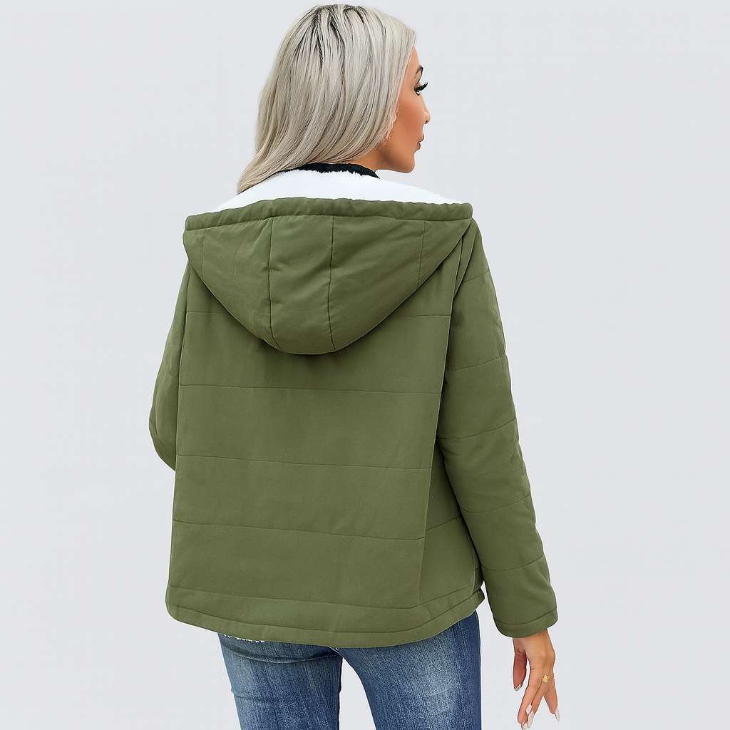 Die hochwertige Fütterung sorgt für angenehme Wärme, ohne aufzutragen, während der schlanke Schnitt und die feinen Details dem Mantel eine raffinierte Note verleihen. Die Kapuze, der Reißverschluss und die zusätzlichen Knöpfe verbinden Schutz und Stil – ideal für Alltag und gehobene Anlässe gleichermaßen.