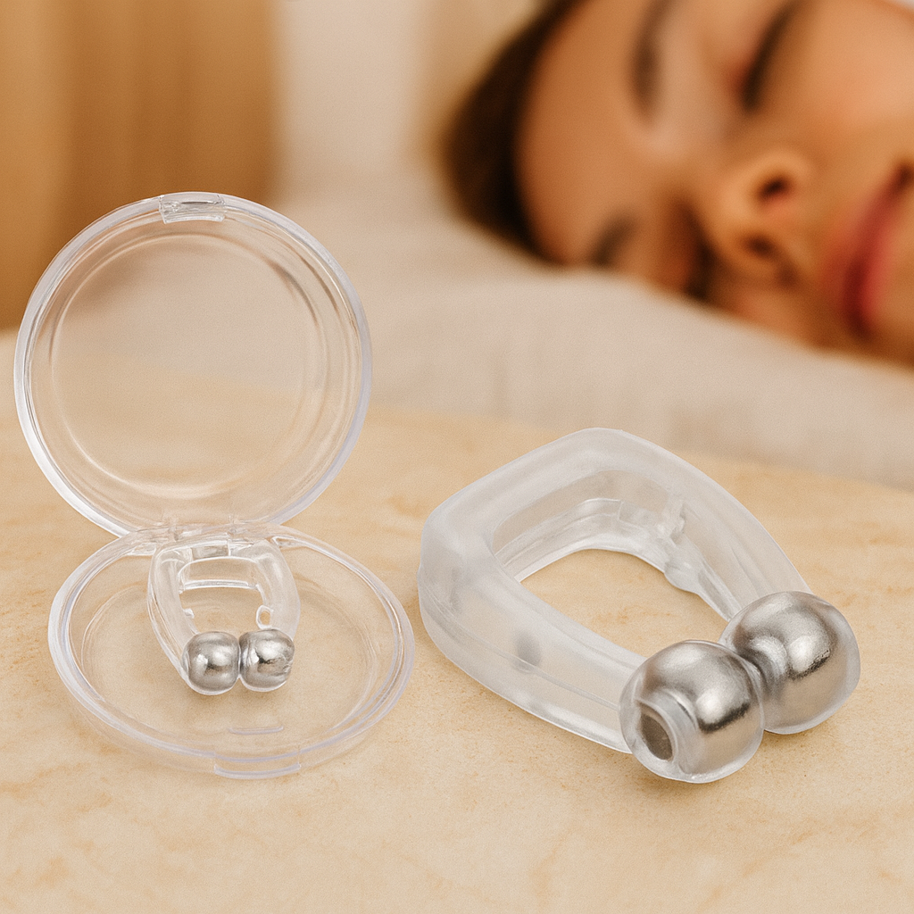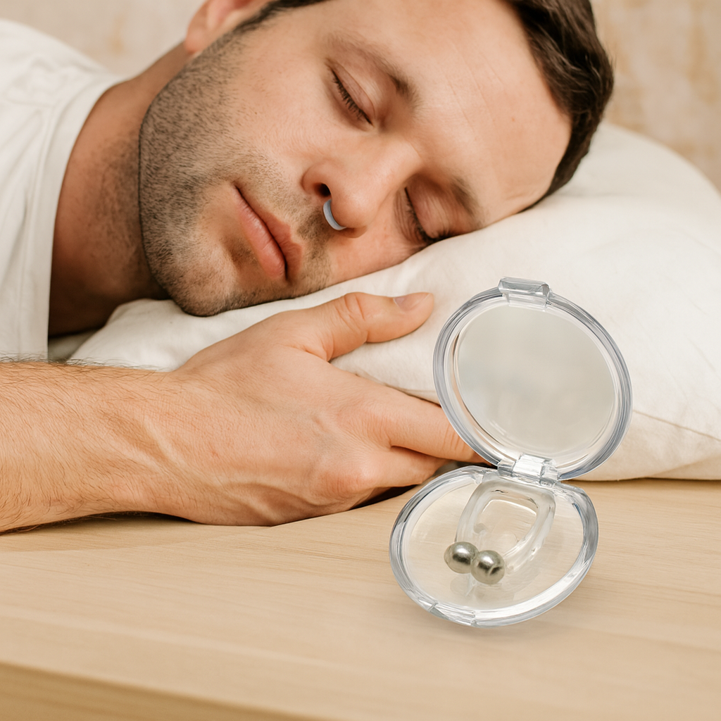 Verabschieden Sie sich von unruhigen Nächten mit dem magnetischen Nasenclip von SomnoEase. Er reduziert Schnarchen bequem und effektiv. Dieses innovative Gerät ist leicht und sanft zur Haut und verbessert die Luftzirkulation für einen ruhigen, ungestörten Schlaf. Genießen Sie erholsame Nächte und wachen Sie erfrischt und voller Energie auf.
