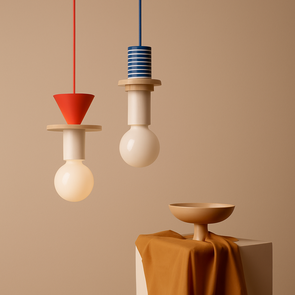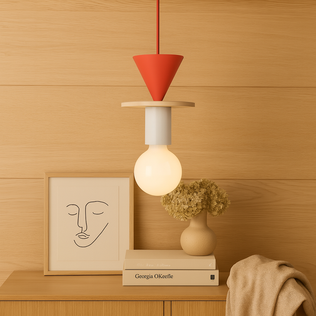 Kunstvolle Geometrie: Skandinavischer Minimalismus mit klaren Linien und farbigen Akzenten für einen modernen Look.