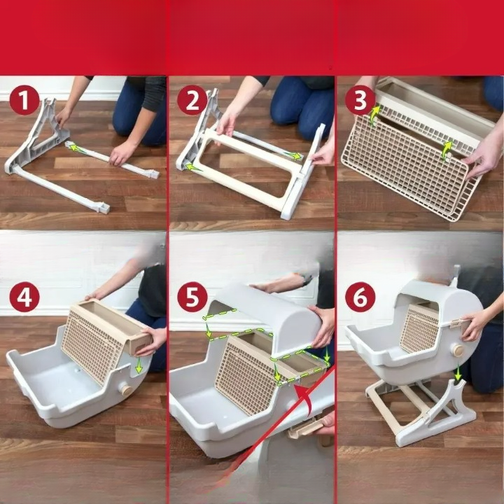 Mit seiner Schubladenkonstruktion und der halboffenen Struktur minimiert dieses Toilettenset sowohl Unordnung als auch Gerüche. Der breite Einstieg und die Lüftungsöffnungen sorgen für einen einfachen Zugang und optimale Luftzirkulation für alle Katzen.
